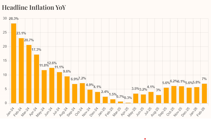Pakistan’s Inflation Rises to 7% in February 2026